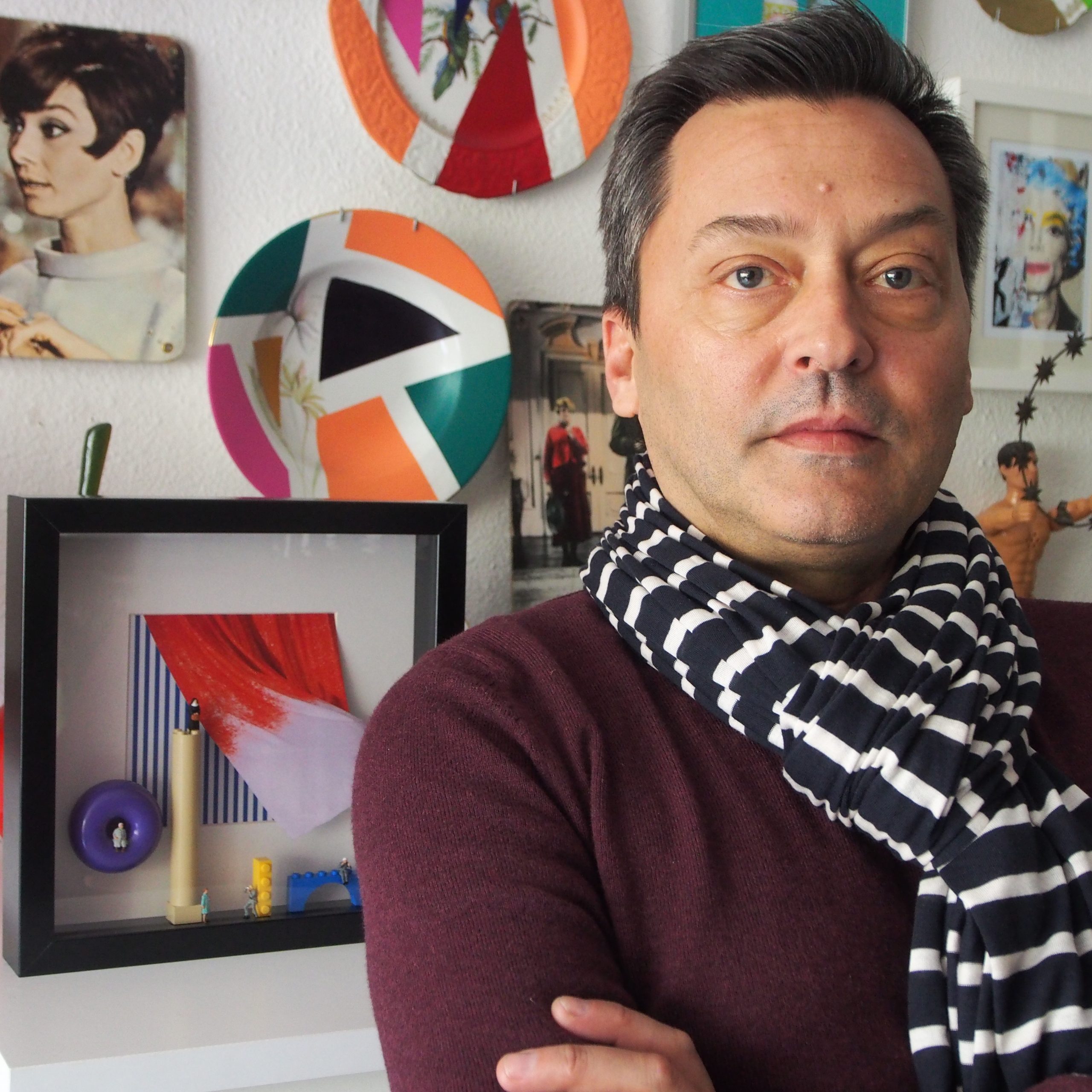 His passion for opera and scenic spaces leads him to conceive the project “Once upon a time …”. Creates scenarios and stories, presents characters, provokes those who see them. It proposes a dialogue between the object and the observer, allowing each one, in his time and to his measure, to always construct a new history.