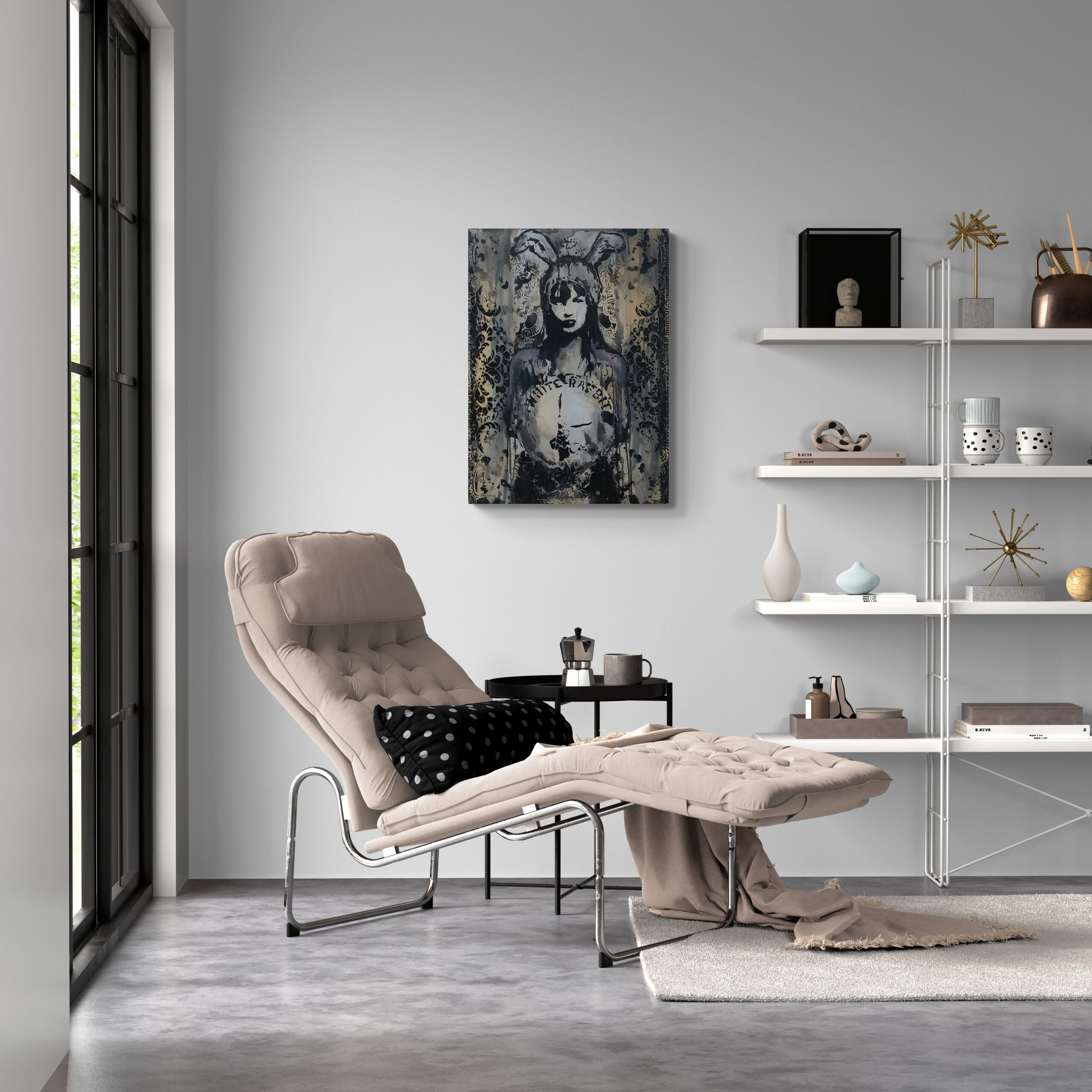In 2017, Riccardo relocated to Barcelona, where he began an intense period of street art and studio painting. His body of work can be divided into two main themes: The White Rabbit Revolution and The Contemporary Masks. While the style and touch of the artist are easily recognizable, these two collections differ in theme. The White Rabbit Revolution conveys a sharp, ironic approach with characters featuring rabbit ears, while The Contemporary Masks explores deeper, more poignant subjects, such as the faces of African children who have grown up in war-torn countries, evoking a sense of depth and infinity.