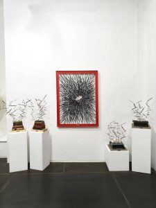 En “Trazos de Vida”, el artista lo transforma en materia viva – los multiplica, los agrupa, los confronta, los hace volar – para construir escenas que evocan la condición humana, nuestras relaciones, nuestras diferencias y nuestra capacidad infinita de imaginar.