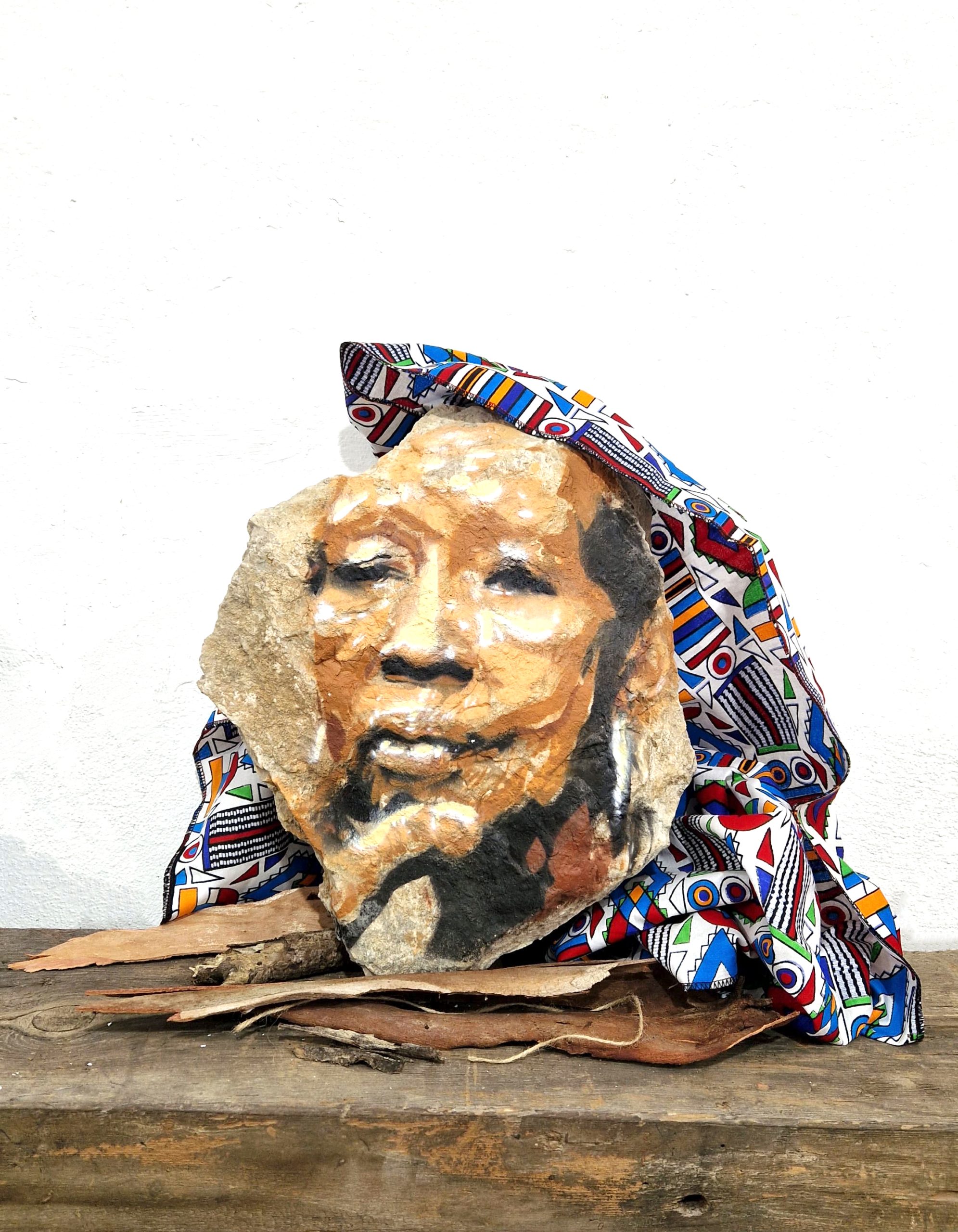 Spray paint on stone, wood and fabric