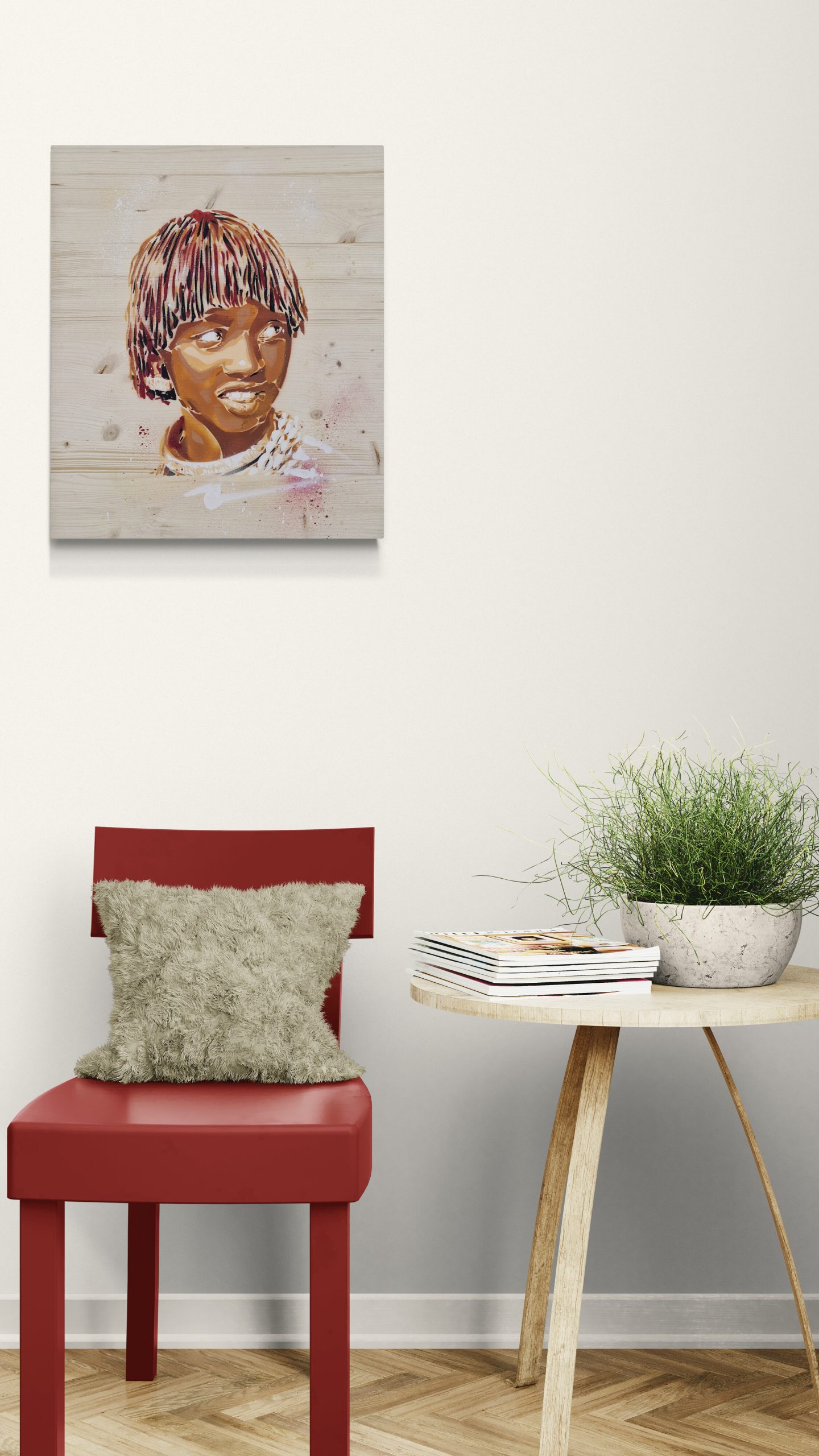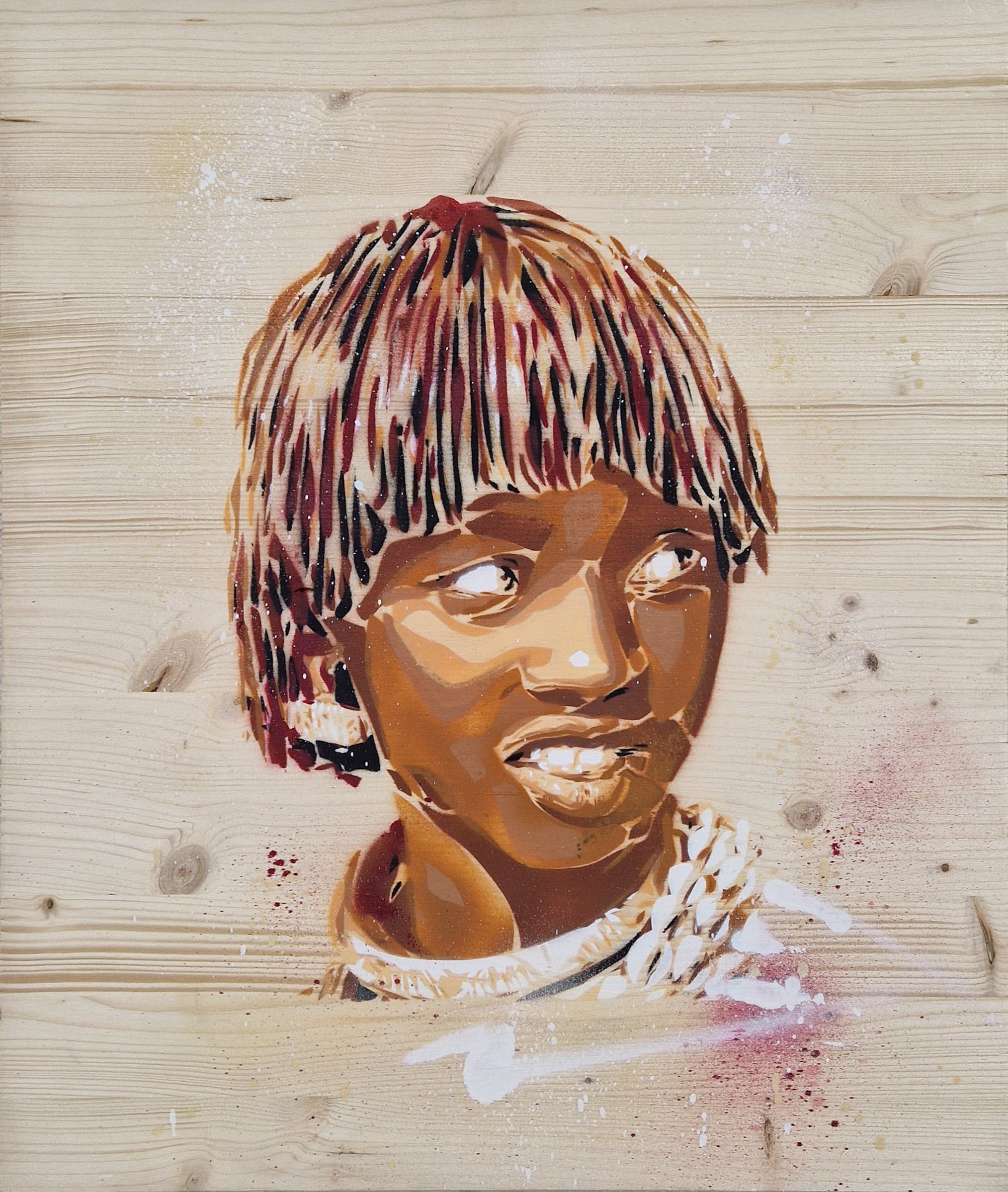 Spray and stencil on wood
