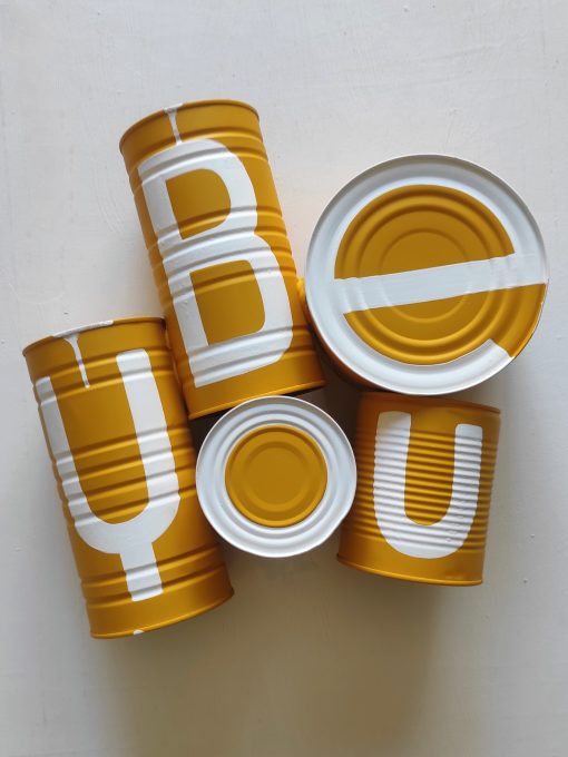 Acrylic and spray on recycled cans