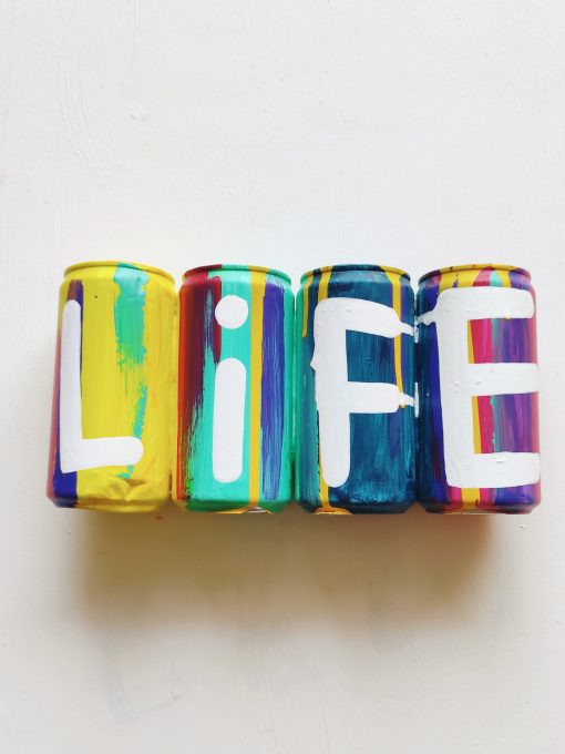 Acrylic and spray on recycled cans