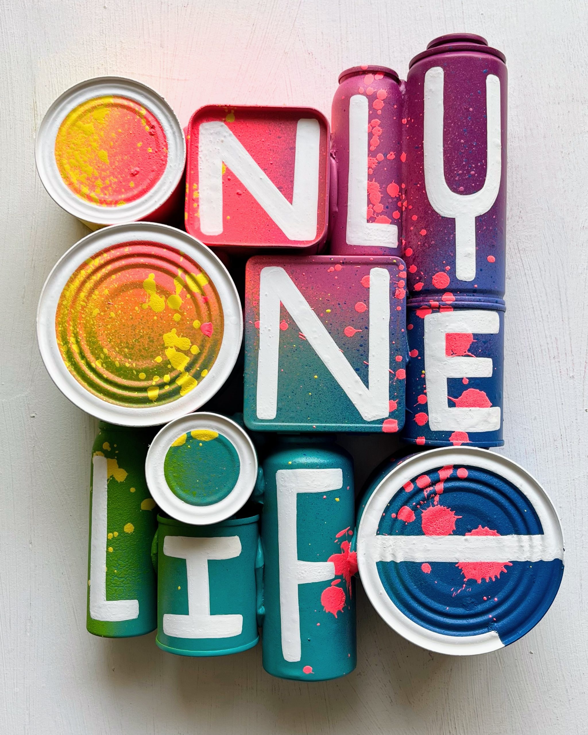 Acrylic and spray on recycled cans