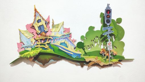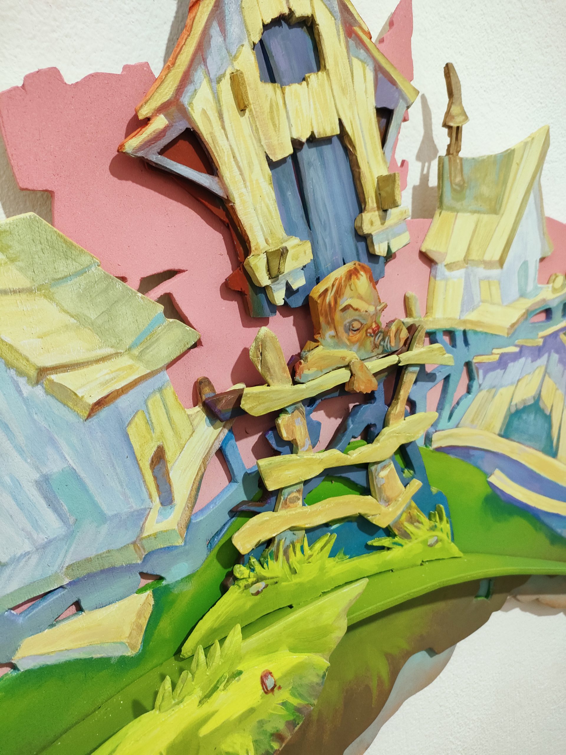 Playwood 4mm, acrylic, spraypaint, glue, varnishes, all hand cut and painted
